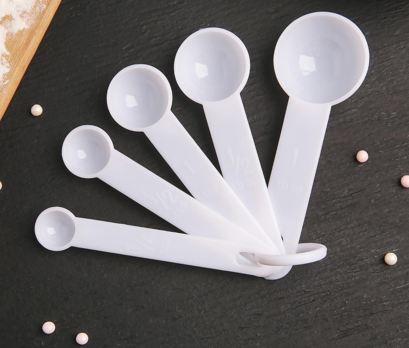 В предложенный комплект входят ложки разного размера (объем указан на лицевой стороне ручки). Яркие инструменты украсят кухню свежими красками.